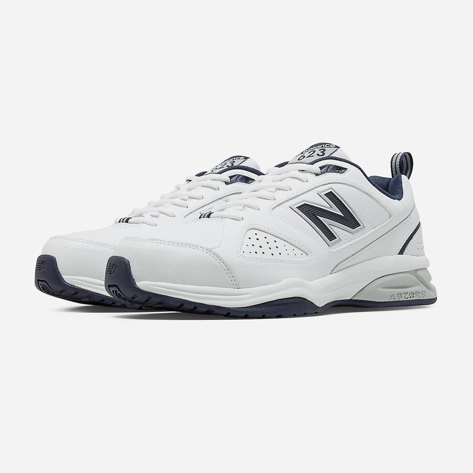 ABZORB® cushioning system in heel and forefoot for superior shock-absorption. This New Balance 623’s (black or white) upper consists of premium leather for a durable and athletic feel. IMEVA (injection-molded EVA foam) midsole for a one-of-a-kind flexible feel. A stability shank specifically designed for low-arching feet is implanted for support. New Balance 623 shoe includes a non-marking rubber outsole, and the Seamless Phantom lightweight liner provides a luxurious fit.