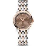 OMEGA De Ville Prestige 27.4mm Two-Tone Diamond Bezel Mother of Pearl Diamond Dial Watch 424.25.27.60.55.002. Stainless steel & 18ct red gold 27.4mm case and fully diamond set bezel all on a steel & 18ct red gold bracelet. This ladies watch has a white mother of pearl dial with red golden hands and hour markers, 8 diamond set hour markers. Sapphire crystal glass. and water resistant up to 30m. Quartz movement.