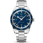 Designed especially for divers and professionals who work underwater, the Seamaster 300 watch by Omega continues its story of success with this 41mm model, crafted from stainless steel and integrated with 300-meter water resistance. The robust tool for on and offshore Features a rich black dial and rhodium-coated hands and indexes that have been coated with vintage Super-LumiNova. The surrounding black oxalic anodized aluminium bezel with a diving scale is also filled with the same luminous material and seals to a strong pane of anti reflective and scratch resistant sapphire crystal glass. Flip the watch over and a glimpse of the Co-Axial Master Chronometer Calibre 8912 is granted through a transparent caseback. This self-winding engine is resistant to magnetic fields up to 15,000 gauss and produces a 60-hour power reserve. This men’s Omega Seamaster 300 also Features a stainless steel bracelet with links executed in a mix of polished and brushed finishes. The bracelet secures with a folding clasp that has been engraved with the Omega logo.