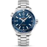 Measuring a 39.5mm diameter, this men’s steel Omega Seamaster Planet Ocean 600M watch is designed with size and water resistance in mind. Equipped with all the dive Features expected of any luxury watch and plenty more = the Planet Ocean 600M is a model recognised across the globe for its impressive 600-meter water resistance. It also Features an alveol screw-down crown, a screw-down caseback equipped with a sapphire exhibition lens and a helium escape valve at 10 o’clock. The model provides the wearer with a clear and simplified black ceramic dial to read the time from, equipped with arrow-tipped and luminous-treated hands. The hour markers have also been coated with a layer of Super-LumiNova material and a date window resides at 3 o’clock. A black ceramic unidirectional rotating bezel with a Liquidmetal dive scale ensures that time can only ever be reduced underwater, never accidentally extended. In the centre of the men’s Omega Seamaster Planet Ocean 600M watch is the Omega Master Chronometer calibre 8800, with provides a 55-hour power reserve. This self-winding engine is also resistant to magnetic fields up to 15,000 gauss and has passed the 8 rigorous tests set by METAS (The Swiss Federal Institute of Metrology). To finish, the men’s Omega Seamaster Planet Ocean 600M watch secures to the wrist with a rugged stainless steel bracelet and a patented extendable fold over clasp.