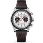 Inspired by chronograph wristwatches from the 1940s – this Omega Speedmaster Chronoscope Co-Axial Master Chronometer Chronograph is a 43mm model crafted from stainless steel. Underneath a strong anti reflective sapphire crystal glass front and inside a black anodised aluminium bezel featuring a tachymeter scale, is a silver dial with a unique “spiral” track pattern running beneath each Arabic numeral hour marker in a matching black hue. The leaf-shaped hands join with three measuring scales offering telemeter, pulsometer and tachymeter functions, finished against a 1940’s “snail” design, as well as chronograph sub-scales at 3 and 9 o’clock offering 12-hour and small second functions. This men’s Omega Speedmaster Chronoscope Co-Axial Master Chronometer Chronograph is finished on a stainless steel bracelet with a folding clasp and Features a sapphire crystal glass exhibition caseback that exposes the Co-Axial Master Chronometer Calibre 9908 through its lens. This movement provides a 60-hour power reserve and Features a column wheel and Co-Axial escapement, together with a silicon balance-spring, two barrels mounted in series, and a time zone function