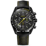The Omega Speedmaster Chronoscope Co-Axial Master Chronometer Chronograph watch is a design based on a much earlier 1940s chronograph model and Features a trio of measuring scales towards the centre of the dial that offer telemeter, pulsometer and tachymeter functions. In addition to this, the watch Features black-filled chronograph counters offering 12-hour and small second functions respectively, set against a silver dial and positioned inside a black anodised aluminium tachymeter bezel. The front of this Speedmaster Chronoscope Co-Axial Master Chronometer Chronograph watch is sealed with a sapphire crystal glass front. The same material is used on the back of the case to expose the performance of the Co-Axial Master Chronometer Calibre 9908 through its surface. This engine provides a 60-hour power reserve and comes equipped with a column wheel and Co-Axial escapement fitted with a silicon balance spring. The watch is completed on a black leather strap with a red interior, along with a robust steel fastening engraved with the famous Omega logo.