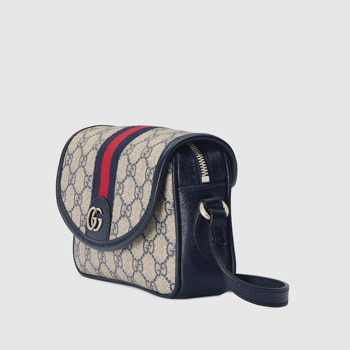 Guccio Gucci’s everlasting monogram continues to enrich new designs with a logo feel. This Ophidia mini shoulder bag is presented in a beige and blue variation of the historical GG Supreme canvas, complete with the Web stripe.