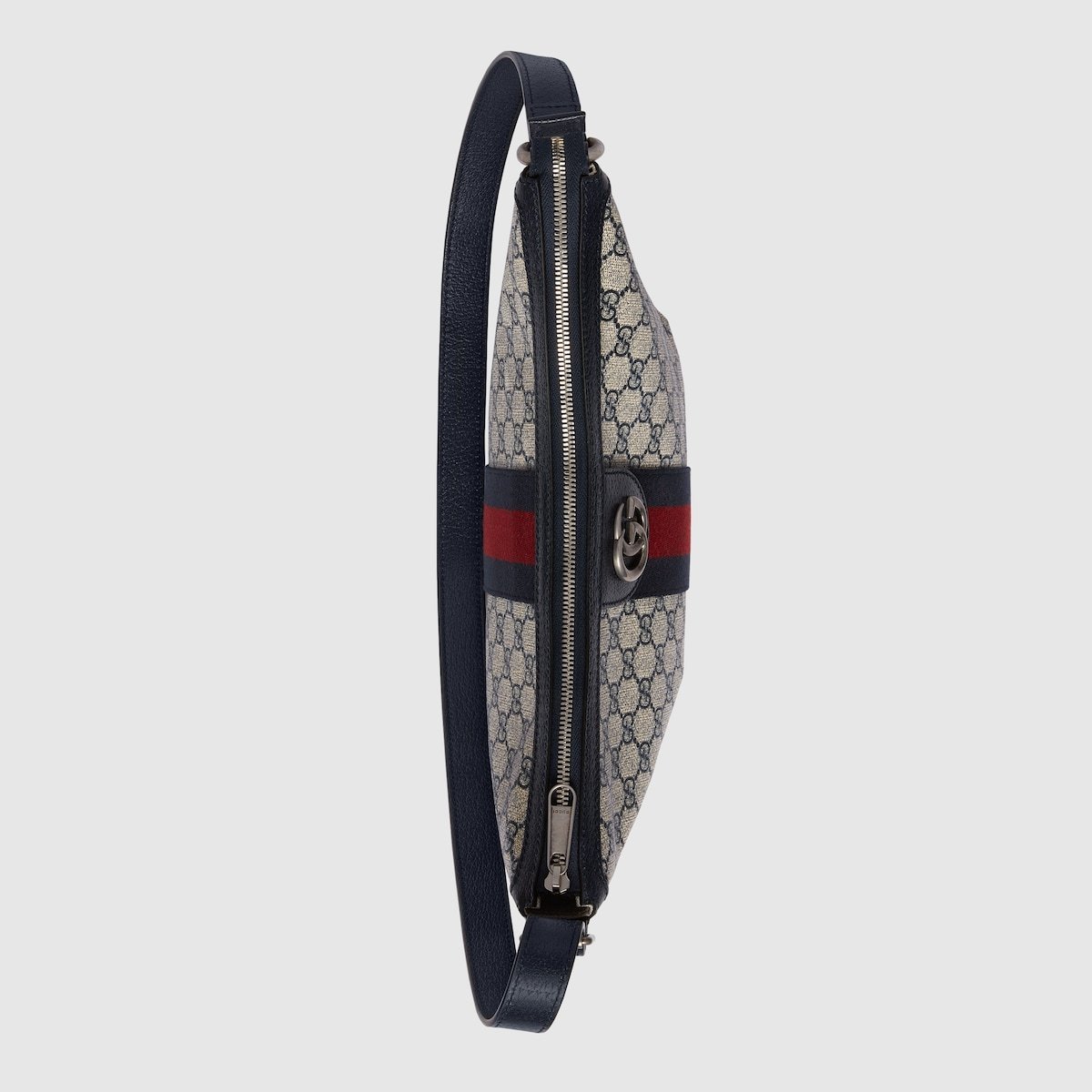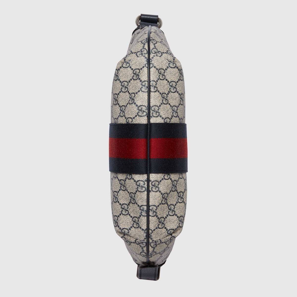 Mirroring the material’s historic origins, GG Supreme is introduced in a timeless mix of blue and beige for Gucci Love Parade. The canvas has come to the front of each collection decade after decade to become a hallmark of the House. Here, the classic palette defines this Ophidia crossbody bag.