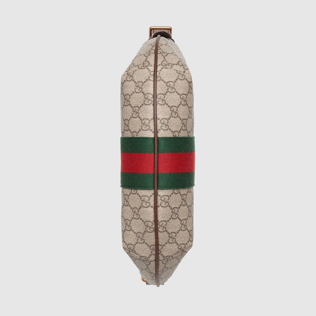 A classic combination of the House’s most recognizable elements??the GG motif and Web stripe??the world of Ophidia continues to evolve, incorporating new shapes and silhouettes. The half-moon design mixes emblematic references with the unique charms of the crossbody bag, a popular Gucci model since the late ’50s. Crafted in GG Supreme canvas, it’s trimmed with textured leather and topped with Double G hardware.