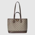 The Ophidia line is further elevated through new sizes and styles including variations with top handles as well as shoulder straps, allowing for versatile wear. The signature Double G hardware completes this beige and ebony GG Supreme design.