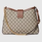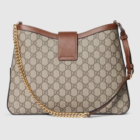 Drawing from the House’s origins as an artisanal luggage atelier, the Padlock closure features prominently on this shoulder bag in GG Supreme canvas. It is complete with gold-toned hardware, smooth brown leather trim, a chain and leather shoulder strap.