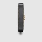 Drawing from the House’s origins as an artisanal luggage atelier, the Padlock closure features prominently on this small shoulder bag in beige and ebony GG Supreme canvas, with black leather trim, and a new adjustable leather and chain strap. It is complete with gold-toned hardware and key with leather holder.