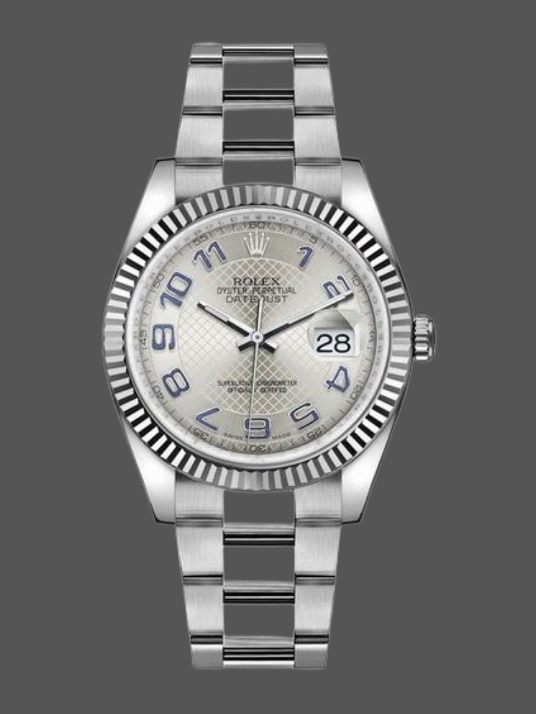 Rolex Datejust 116234 Stainless Steel Case Bronze Dial 36mm Unisex Replica Watch.36mm Stainless steel case with a stainless steel rolex oyster bracelet. Waves Bronze Dial with silver-tone hands and stick hour markers. Diamond-filled arabic numerals mark the 6 and 9 o’clock positions.Date Window Displayed at 3 O’Clock. Cyclops Lens Over Date. Round case shape. Fold over clasp.