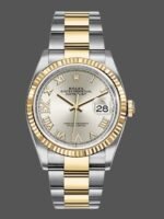 Rolex Datejust 126233 Silver Jubilee Dial Fluted Bezel 36MM Unisex Replica Watch, 36mm yellow Rolesor case with Oystersteel monobloc middle case, screw-down steel back, screw-down yellow crown, yellow fluted bezel, white mother-of-pearl dial, 10 diamond hour markers,Date displayed under cyclops lens in window at 3 o’clock with instantaneous date and rapid setting.Yellow Rolesor Jubilee bracelet with five-piece links, folding Oysterclasp buckle with Easylink comfort extension link.
