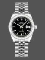 Rolex Datejust 178344 Black Diamond Dial Jubilee Bracelet 31MM Lady Replica Watch,31mm stainless steel case,Black Dial Set with Diamonds,white gold bezel set with 24 scattered diamonds, scratch-resistant sapphire crystal with cyclops lens over the date,date at 3 o’clock, Oystersteel Jubilee bracelet with five-piece links, concealed folding Crownclasp buckle.