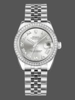 Rolex Datejust 178384 Stainless Steel Brown Diamonds Dial 31MM Lady Replica Watch,Stainless steel oyster case 31.0 mm in diameter. features a diamond set bezel,Scratch resistant sapphire crystal with cyclops magnifier. Brown dial with roman numerals. Roman Numeral Diamond VI at 6 o’clock.Date calendar at 3 o’clock aperture. Stainless steel jubilee bracelet with fold over clasp.