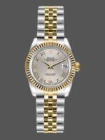 Rolex Datejust 179173 Sunbeam Champagne Dial Fluted Bezel 26MM Lady Replica Watch,Stainless steel oyster case 26.0 mm in diameter.Yellow gold fluted bezel. Scratch resistant sapphire crystal with cyclops magnifier.Sunbeam Champagne Dial with Roman Numeral Hour Markers.Date calendar at 3 o’clock aperture. Stainless steel yellow gold jubilee bracelet with a hidden clasp.