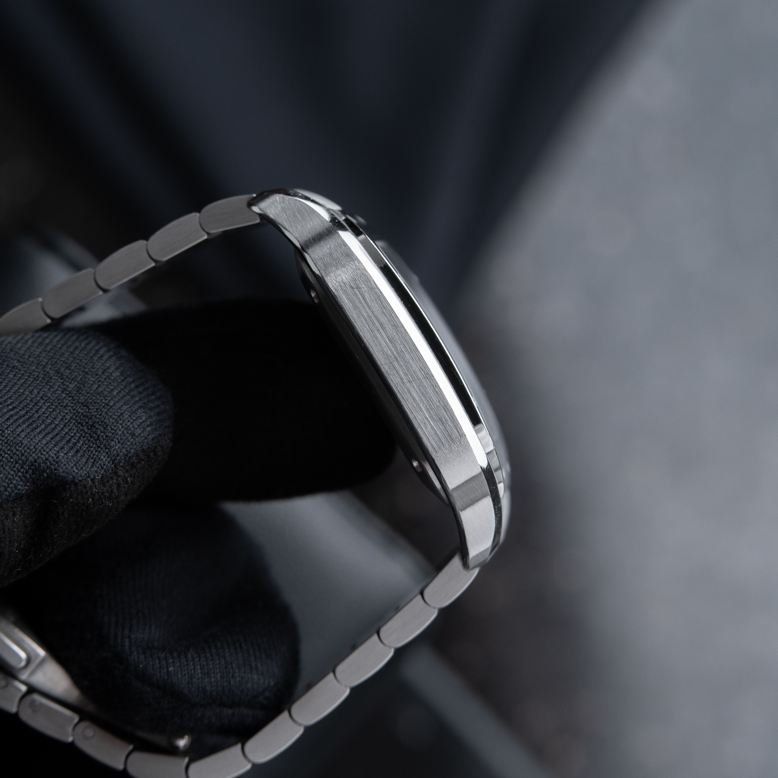 This classic model is rendered in a 35 mm size in a stainless steel, monochrome design for a versatile appeal.