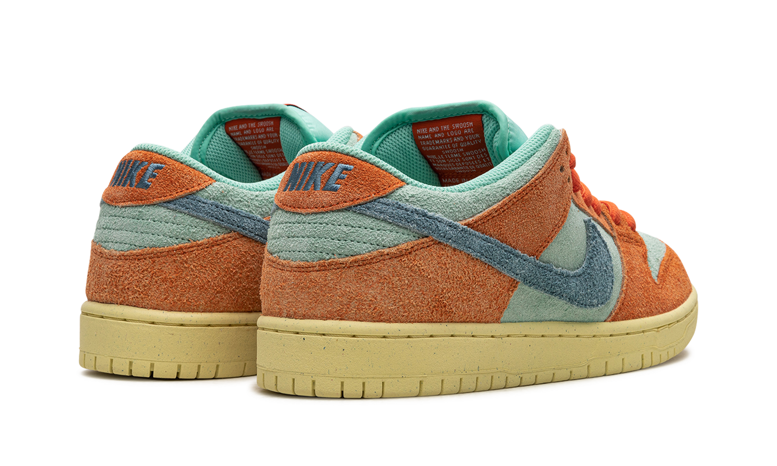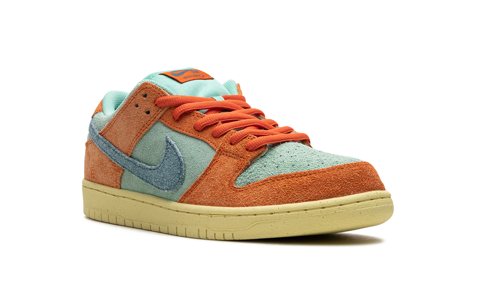 The Nike SB Dunk Low “Orange/Noise Aqua” is another head-turning colorway of the classic skate shoe. Released by Nike SB in Fall 2023, the “Orange/Noise Aqua” SB Dunk Low updates the model with an all-suede look in eye-catching orange and blue hues. Orange suede overlays contrast with the Noise Aqua suede base. A blue suede Swoosh is seen on the mid-panel while classic “Nike” branding appears on the heel. A “Nike SB Dunk” logo is located on the tongue tag. An aged rubber sole completes the look.