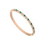 Coiling around the wrist like a sinuous serpent, this bracelet combines the beauty of precious scales with the danger of a snake’s coils. Between light and shadow, intellectuality and sensuality, seduction and desire, the enchanting design fully demonstrates the irresistible contradictions in the nature of the snake. Serpenti Viper series 18K rose gold bracelet inlaid with malachite. Width 4 mm.