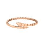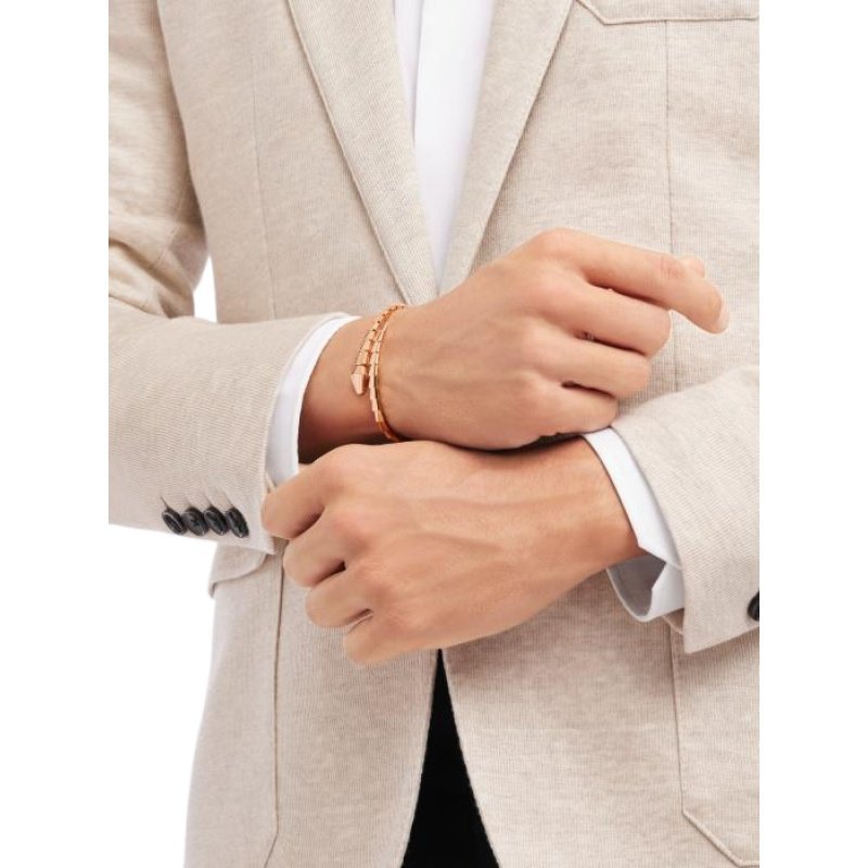 The Serpenti Viper 18K rose gold bracelet cleverly combines pure aesthetics, wraparound shapes and charming charm in an iconic style, and simply interprets the endless transformation and evolution of Bvlgari’s classic works. This charming jewelry piece embodies the powerful characteristics of the mysterious snake’s continuous transformation, inspiring people to actively seek change and regard it as an inexhaustible source of strength and confidence. It is suitable for mixing and matching at will, providing a variety of styling options, showing the flexible and versatile style of the series.