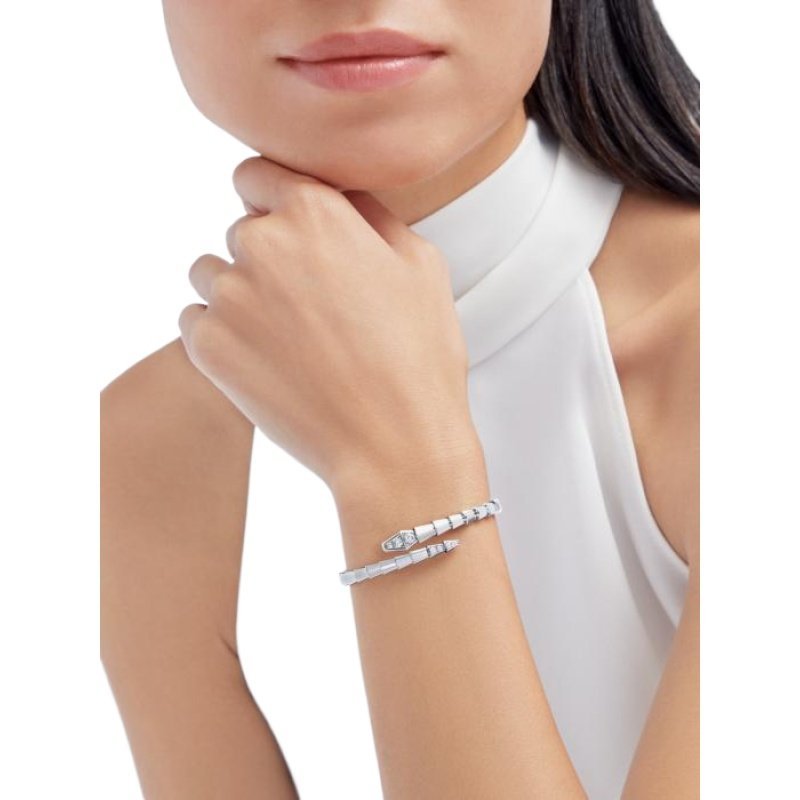Serpenti Viper bracelet in 18K white gold and semi-pave diamonds.