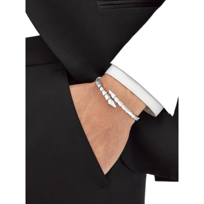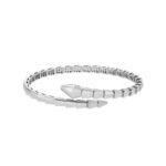 The Serpenti Viper series of white 18K gold bracelets cleverly combines pure aesthetics, wraparound shapes and charming charm in an iconic style, and simply interprets the endless transformation and evolution of Bvlgari’s classic works. This charming jewelry piece embodies the powerful characteristics of the mysterious snake’s continuous transformation, inspiring people to actively seek change and regard it as an inexhaustible source of strength and confidence. Suitable for mixing and matching, it provides a variety of styling options, showing the flexible and versatile style of the series.