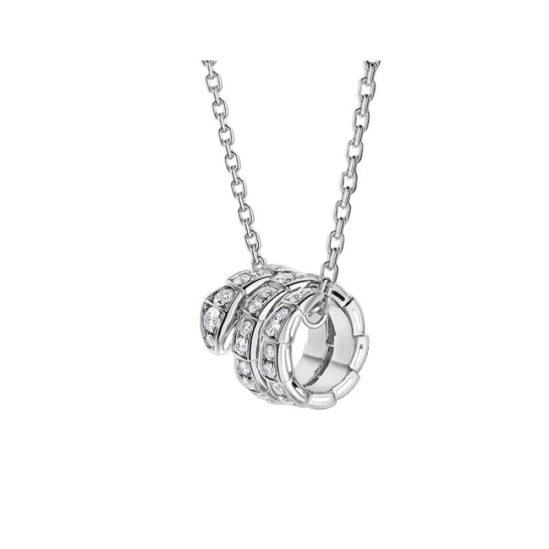 The Serpenti Viper necklace in 18K white gold, fully pavé-set with diamonds, is a signature style that combines pure beauty, circumferential shapes and allure, a simple and concise interpretation of the endless transformation and evolution of Bulgari’s classic creations. This glamorous jewelry piece embodies the powerful characteristics of the mysterious snake’s constant transformation, inspiring people to actively seek change and regard it as an inexhaustible source of strength and confidence. It is suitable for mixing and matching at will, providing a variety of styling options, showing the flexible and versatile style of the series.