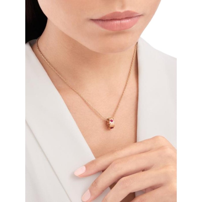 Serpenti Viper pendant necklace, made of 18K rose gold, inlaid with rubies.