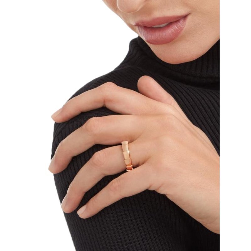 The Serpenti Viper 18K rose gold wedding ring cleverly combines pure aesthetics, enveloping shapes and charming charm in an iconic style, and simply interprets the endless transformation and evolution of Bvlgari’s classic works. This charming jewelry piece embodies the powerful characteristics of the mysterious snake’s continuous transformation, inspiring people to actively seek change and regard it as an inexhaustible source of strength and confidence. It is suitable for mixing and matching at will, providing a variety of styling options, showing the flexible and versatile style of the series.