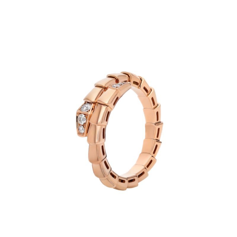 The Serpenti Viper 18K rose gold single-loop ring, decorated with semi-pave diamonds, cleverly combines pure aesthetics, wraparound shapes and charming charm in an iconic style, and simply interprets the endless transformation and evolution of Bvlgari’s classic works. This beautiful jewelry piece depicts the powerful core of the mysterious snake’s gorgeous transformation, inspiring us to be brave and change as an inexhaustible source of strength and confidence. It provides flexible and versatile wearing methods, suitable for mixing and matching at will, showing the ever-changing style of the Serpenti Viper series.