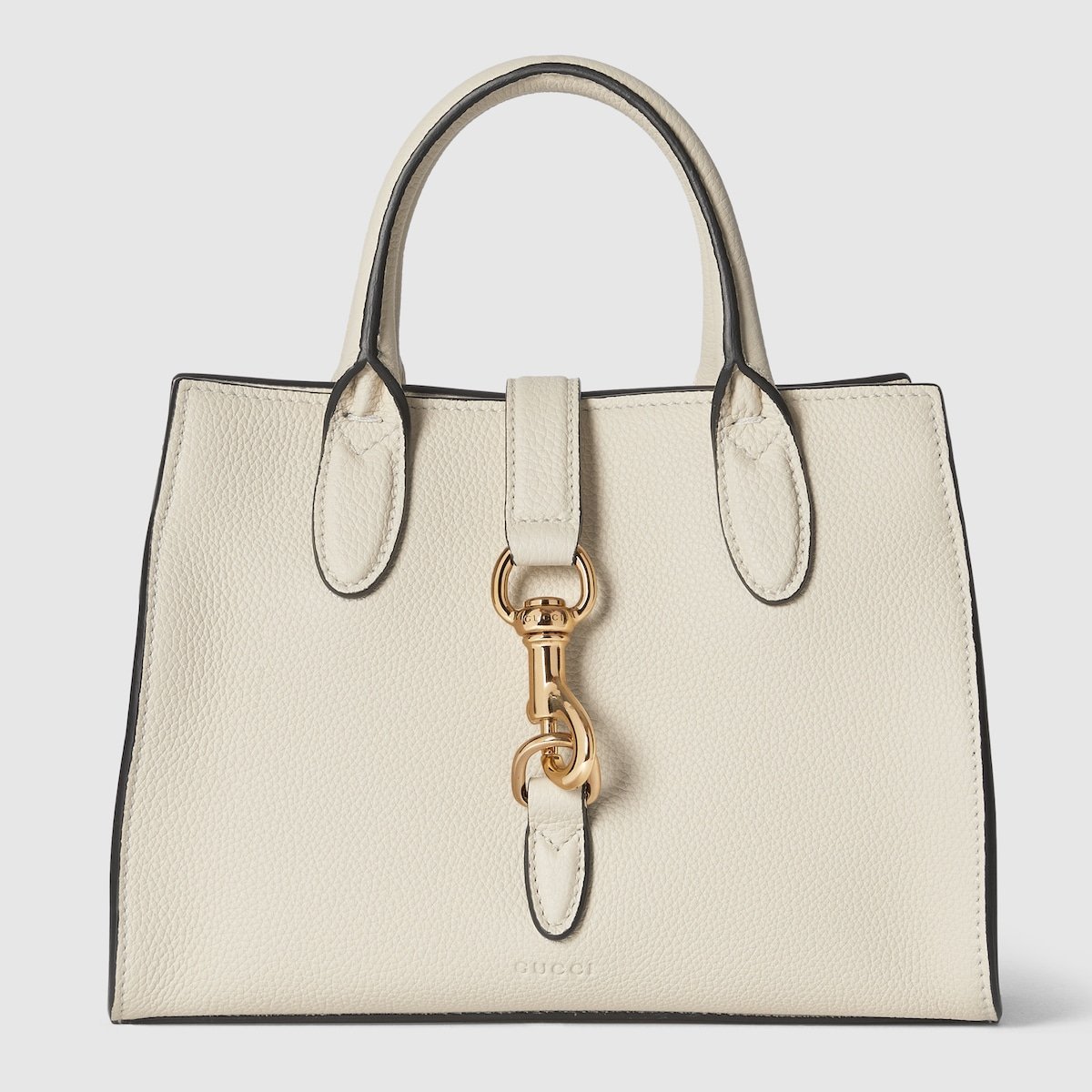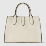 This small tote design continues to feature the snap hook closure, inspired by the styles first presented in Spring Summer 2024. The sophisticated leather in ivory has a distinctive natural grain. This top handle bag holds daily essentials, and is ideal for any occasion with its detachable and adjustable shoulder strap.