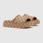Emblematic codes of the House and refined patterns are reinterpreted in contemporary ways for the latest Gucci collection. This wedge sandal is crafted in GG canvas and is defined by the signature silhouette.