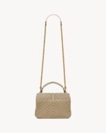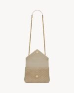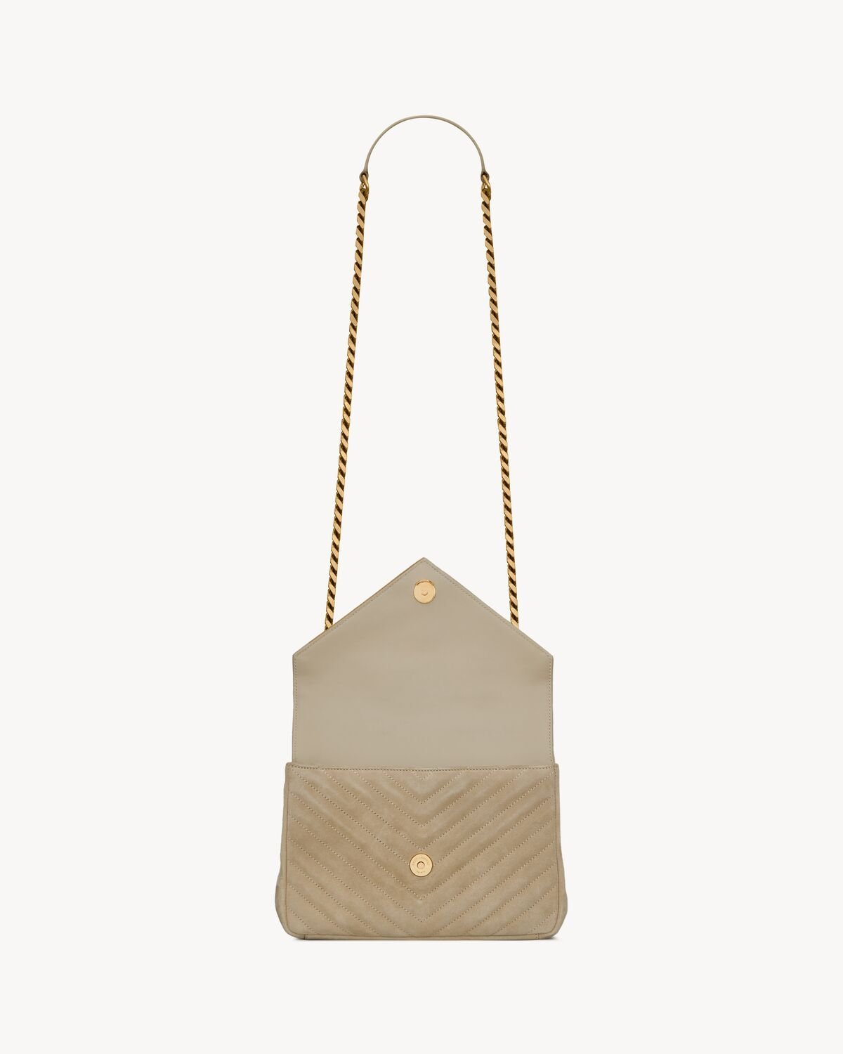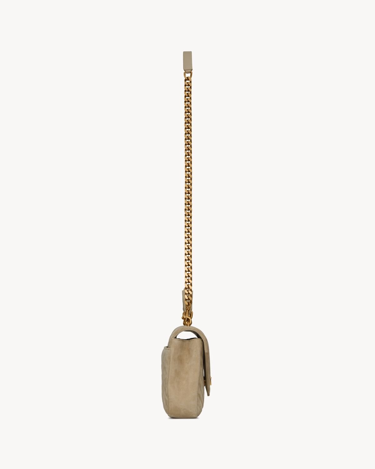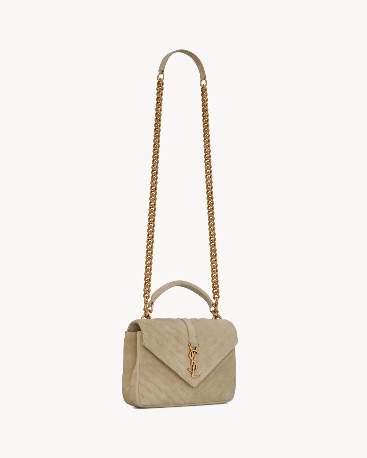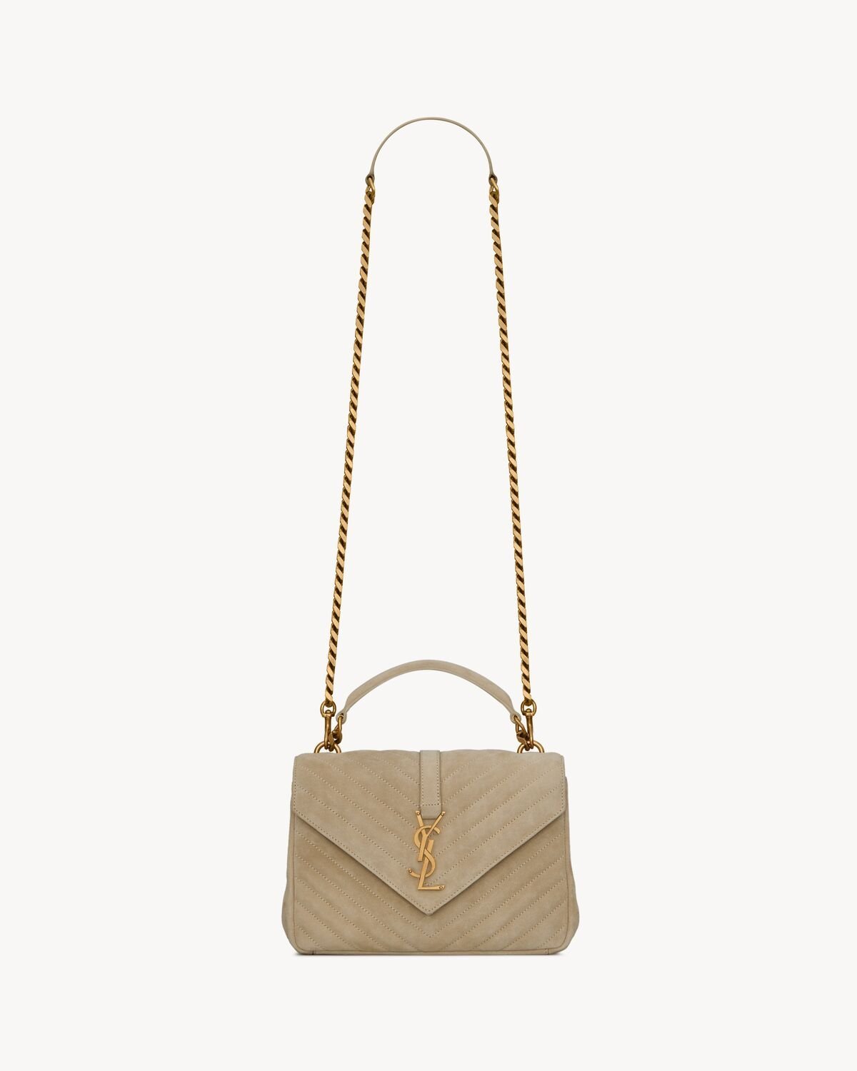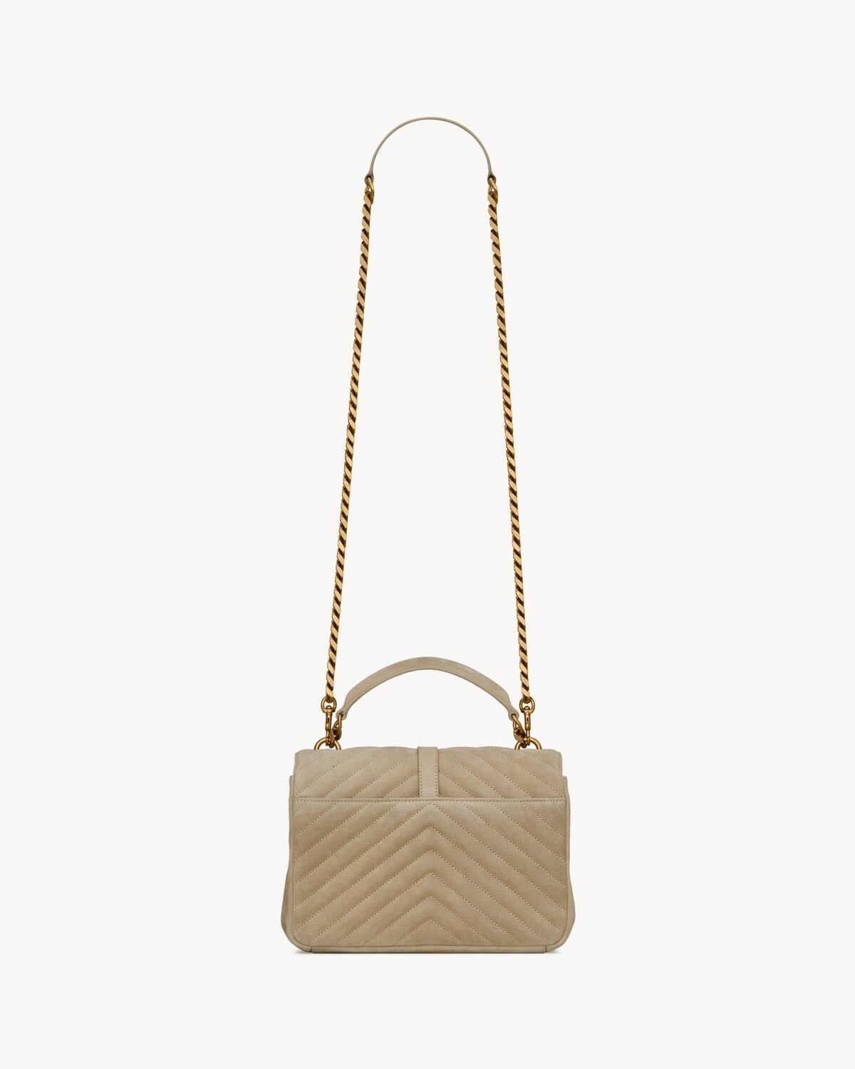 ICONIC SUEDE COLLEGE BAG, FEATURING ICONIC CHEVRON QUILT OVERSTITCHING AND METAL CASSANDRE.