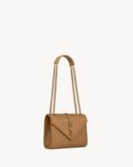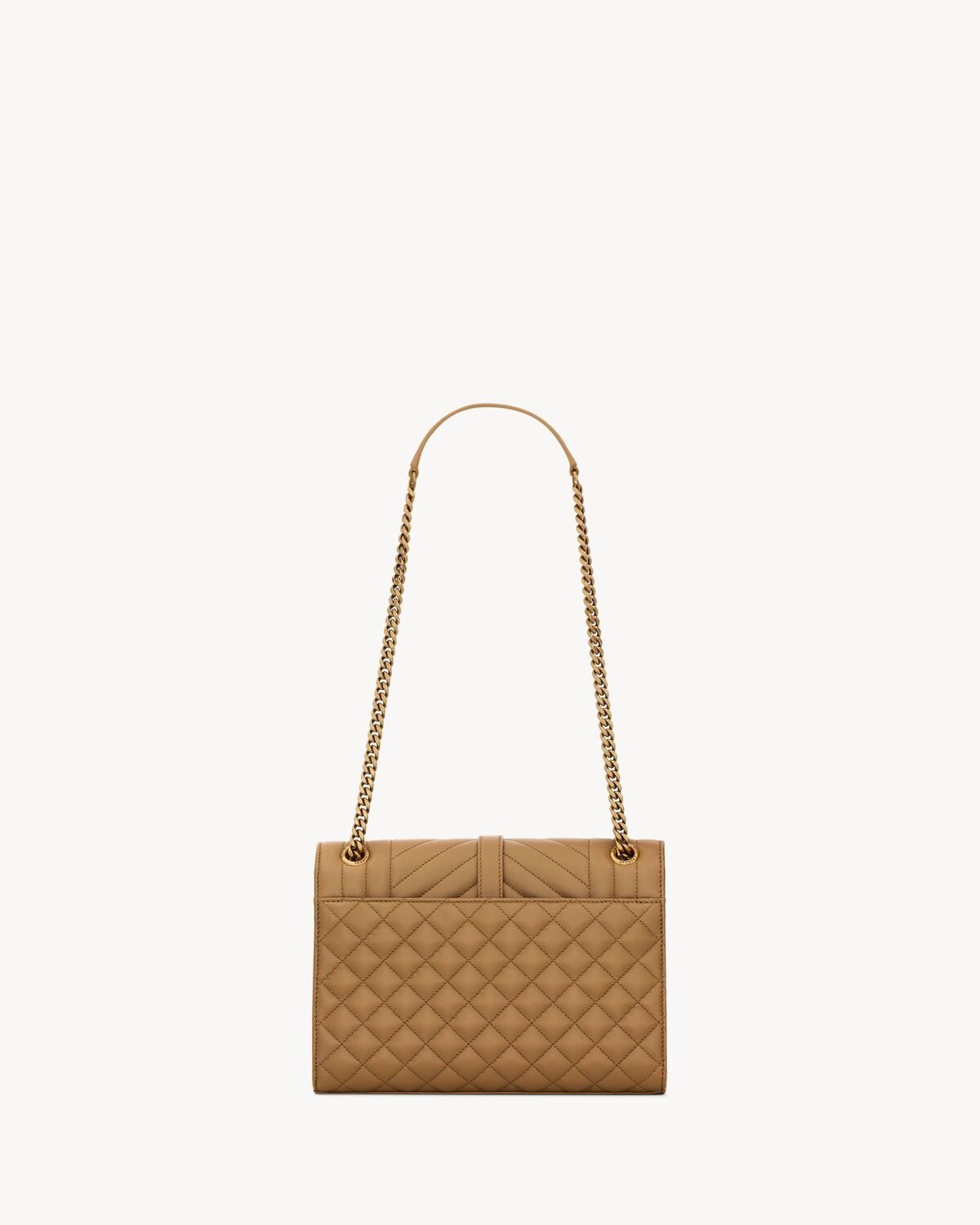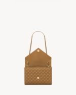 A timeless envelope bag in lambskin with vertical, chevron and diamond quilted topstitching.