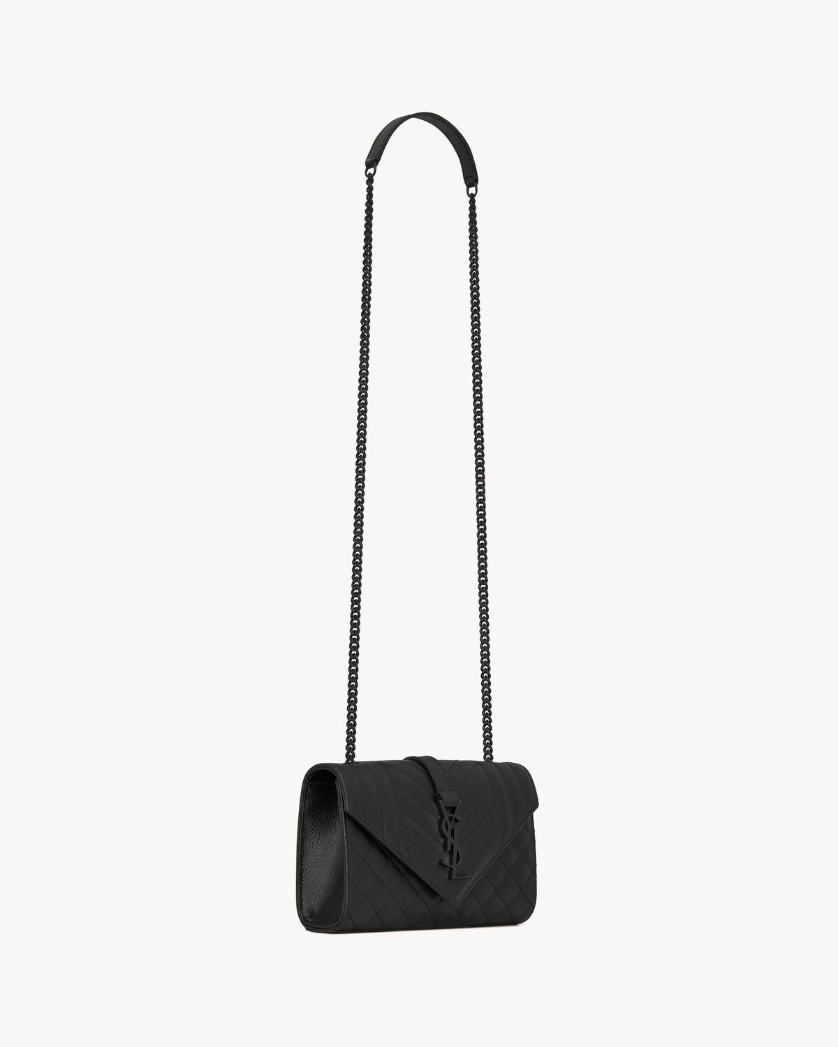 ENVELOPE FLAP BAG IN GRAIN DE POUDRE EMBOSSED LEATHER, FEATURING CHEVRON AND DIAMOND QUILT OVERSTITCHING.