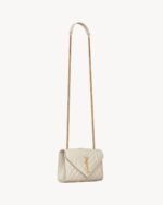 LIGHT, WITH A LONG CHAIN SHOULDER STRAP TO GO FROM DAY TO NIGHT.
