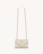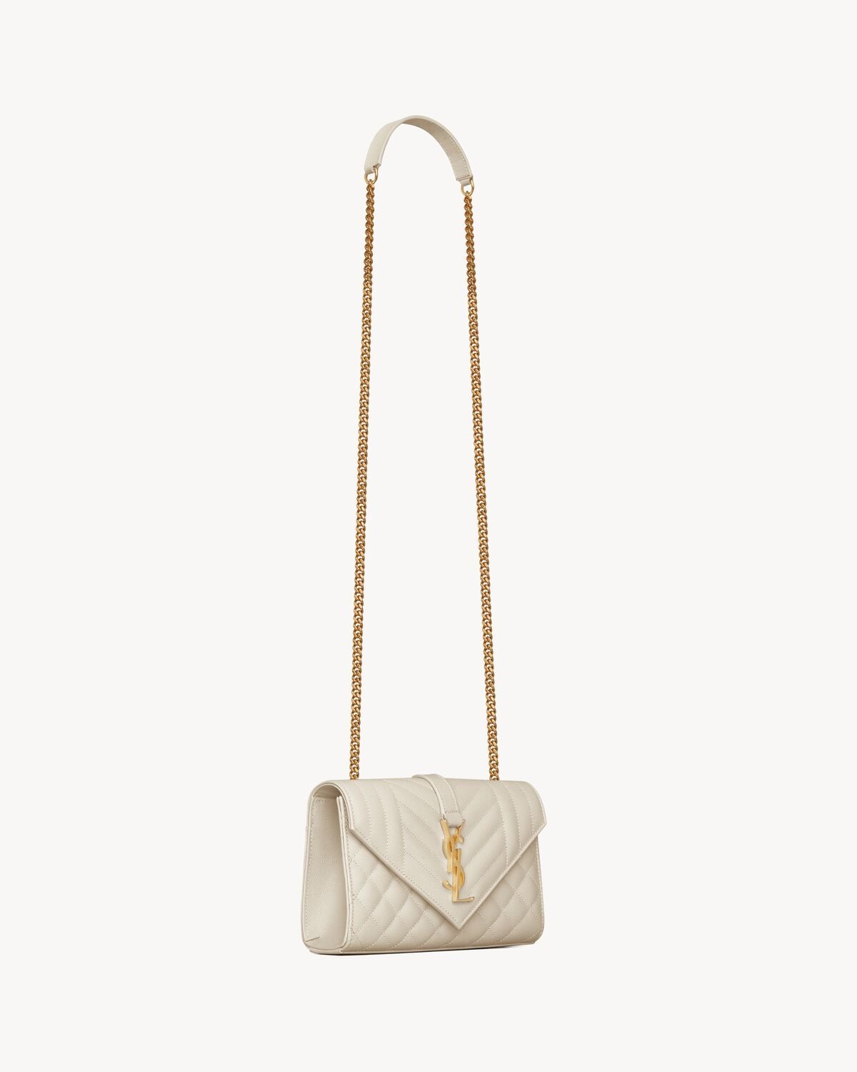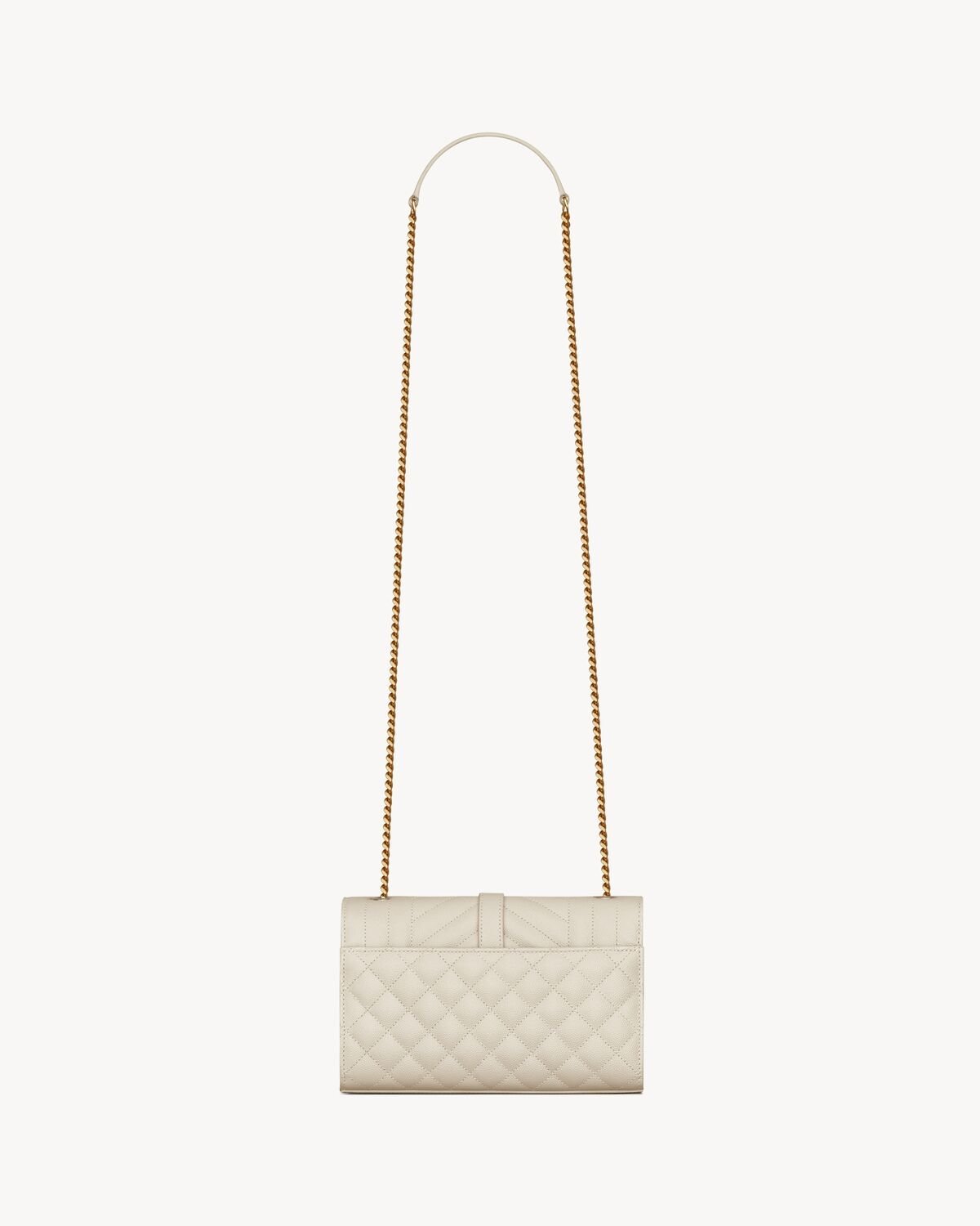 ENVELOPE FLAP BAG IN GRAIN DE POUDRE EMBOSSED LEATHER, FEATURING CHEVRON AND DIAMOND QUILT OVERSTITCHING.
