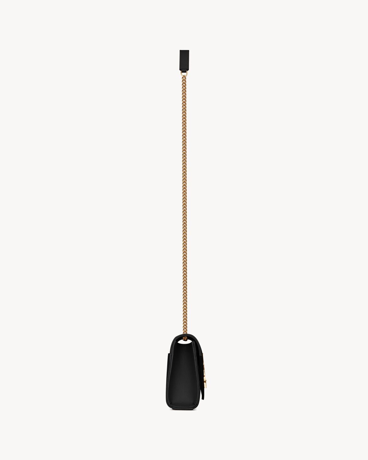 LIGHT, WITH A LONG CHAIN SHOULDER STRAP TO GO FROM DAY TO NIGHT.