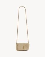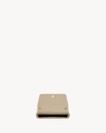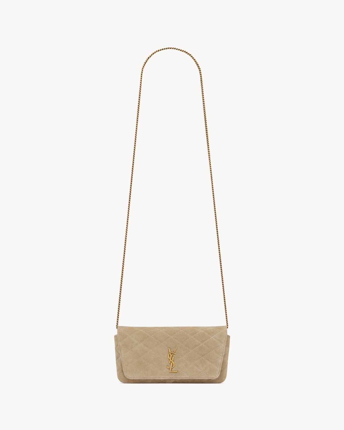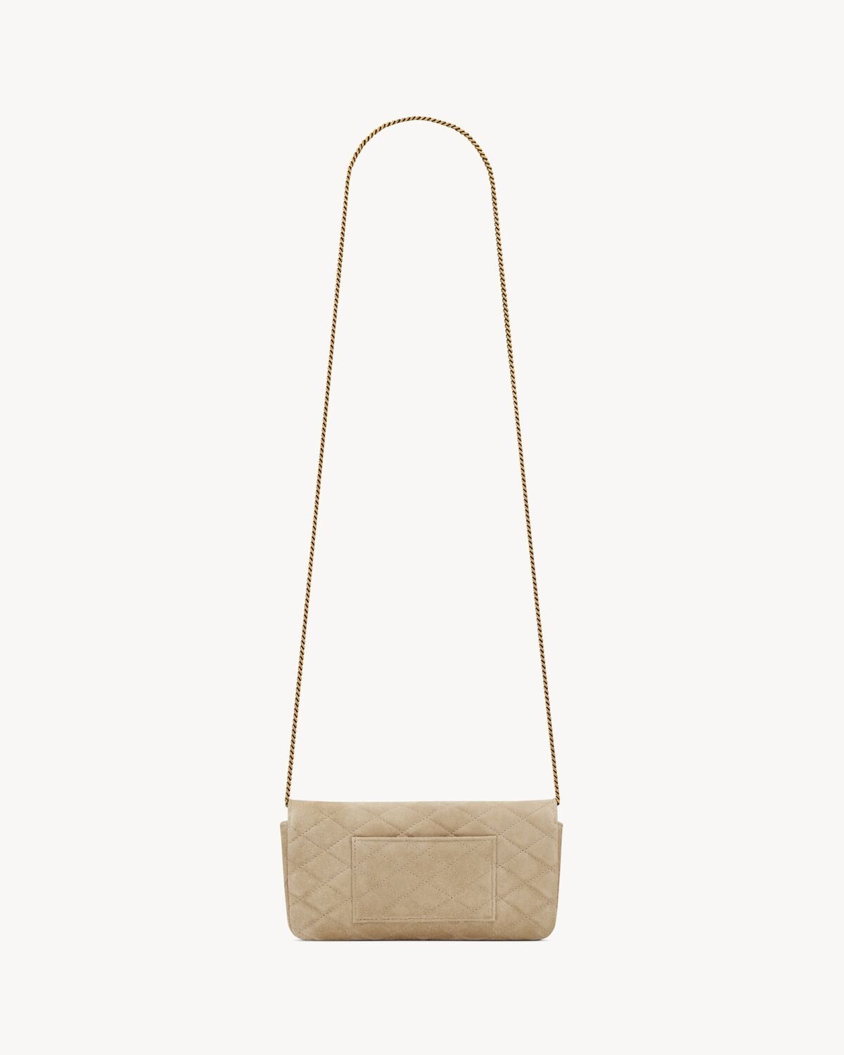 phone holder with front flap, decorated with the CASSANDRE and diamond-quilted overstitching, featuring a chain shoulder strap.
