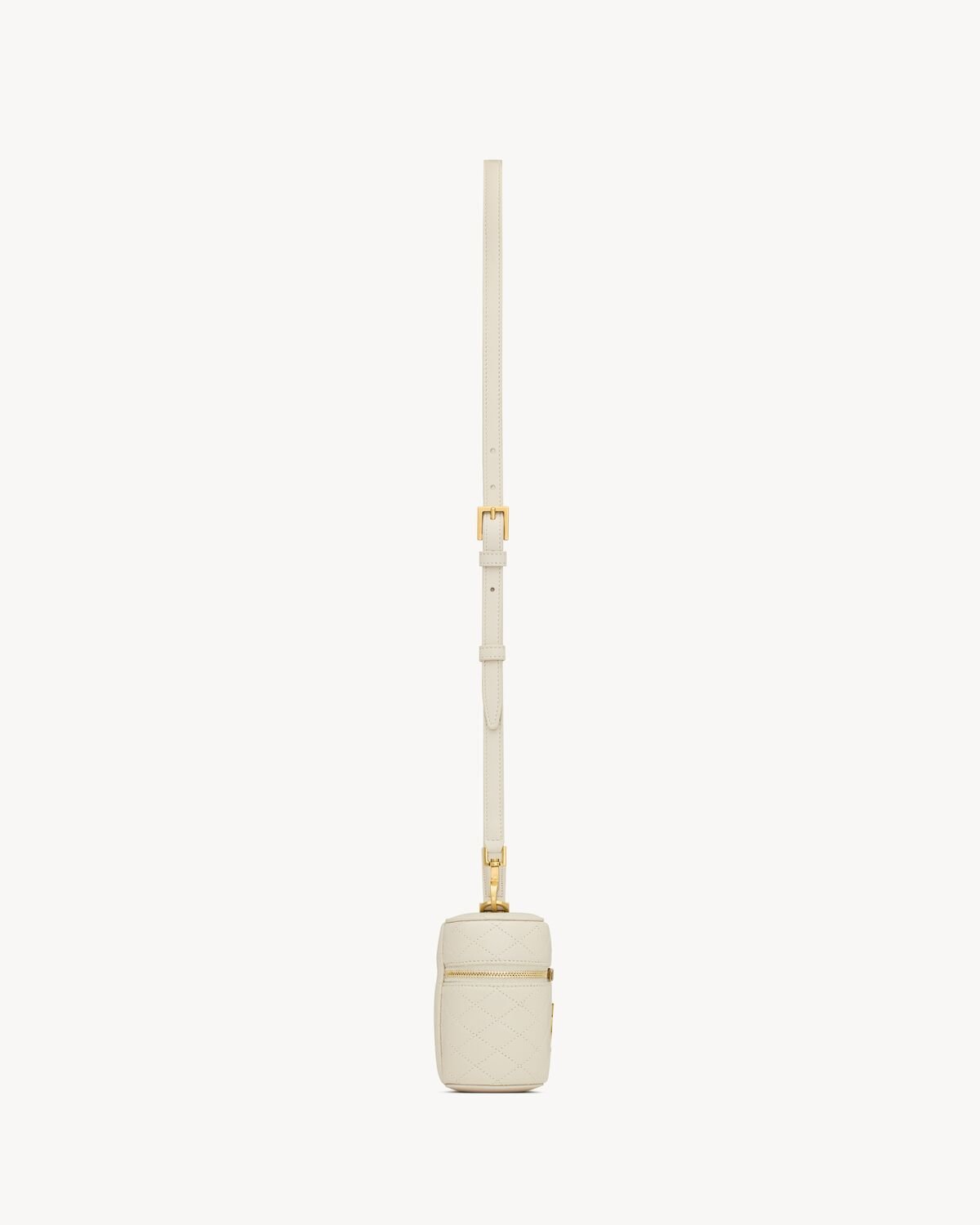 Zip-around vanity bag decorated with the CASSANDRE and diamond-quilted overstitching.