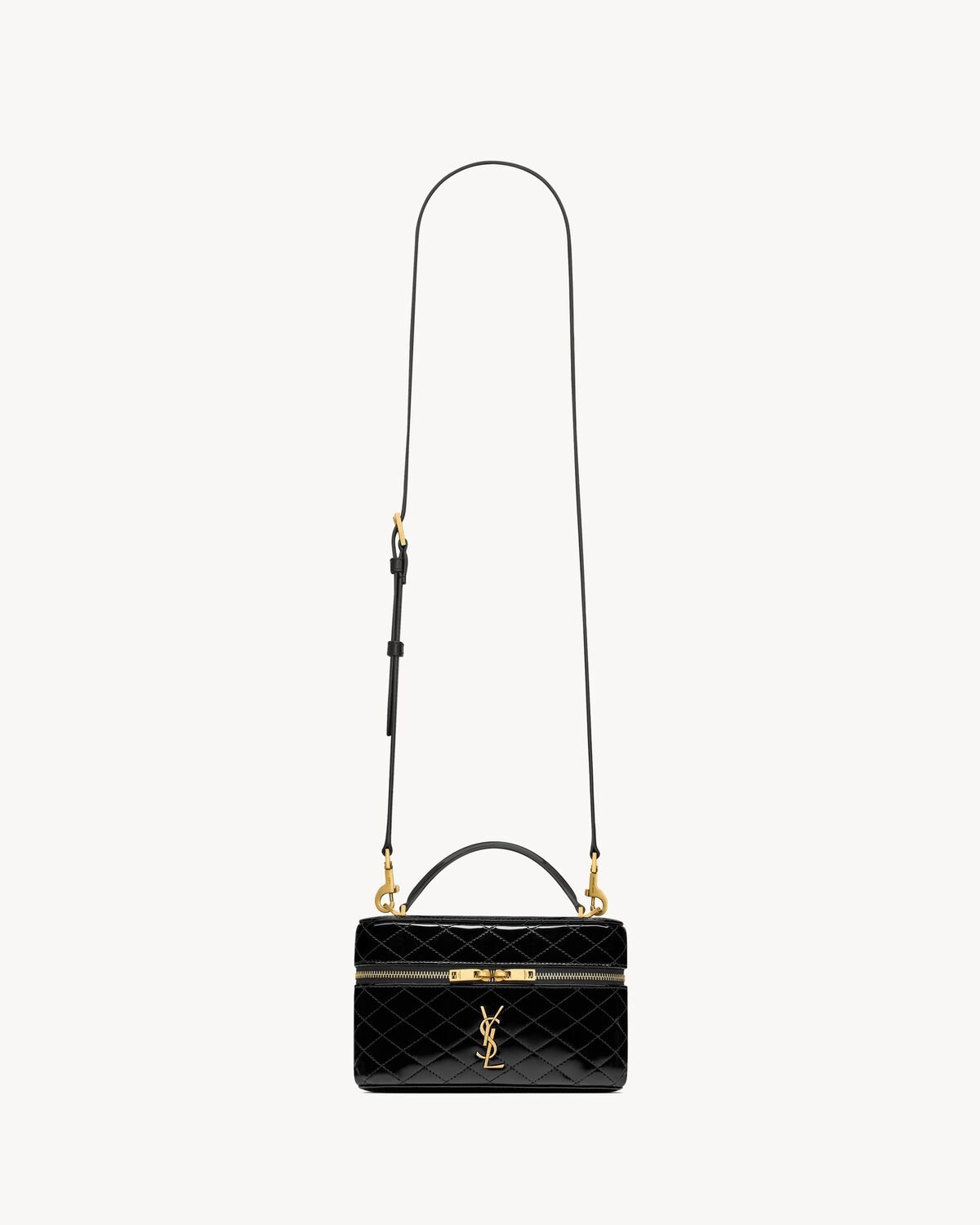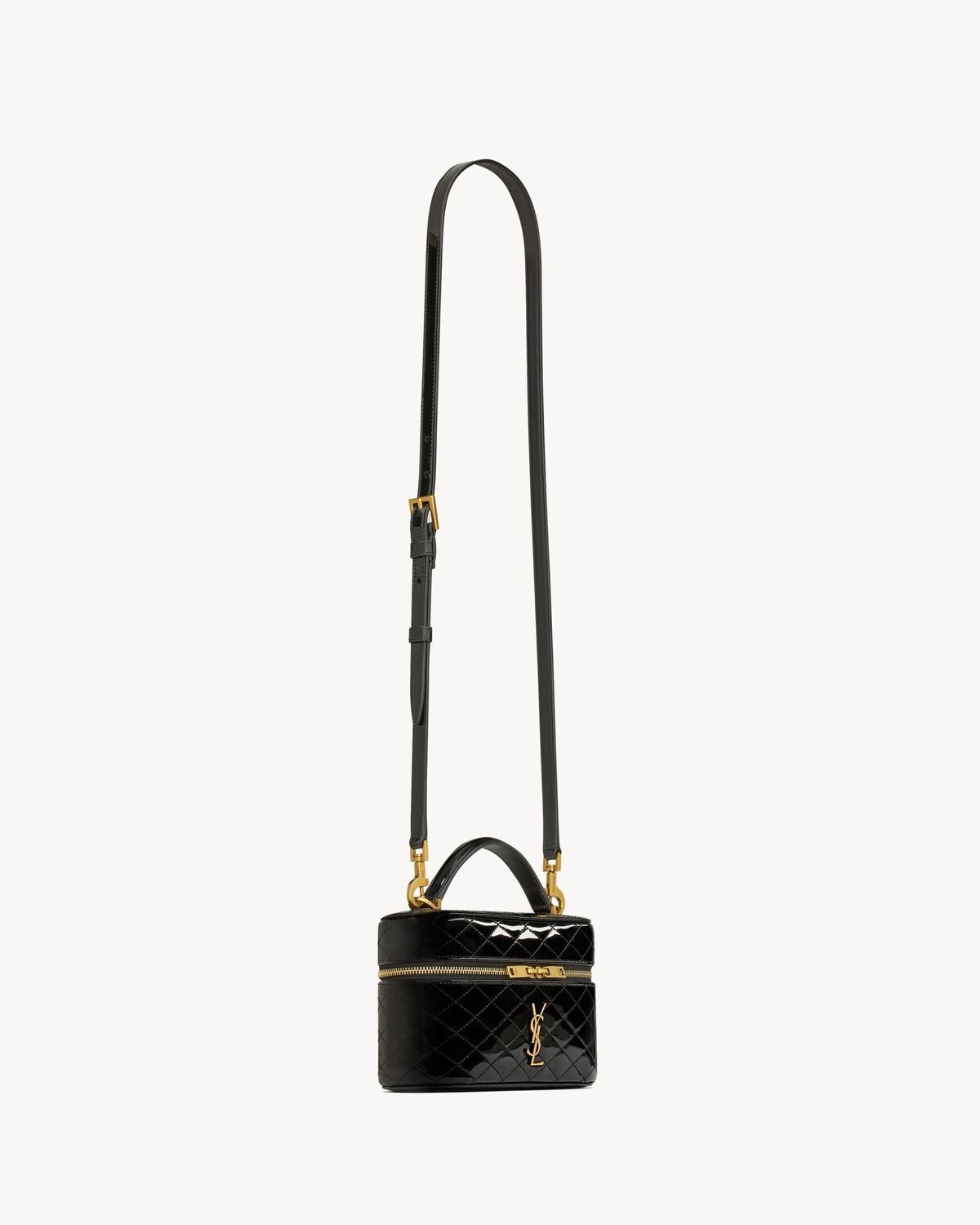 Zip-around vanity bag decorated with the CASSANDRE and diamond-quilted overstitching.