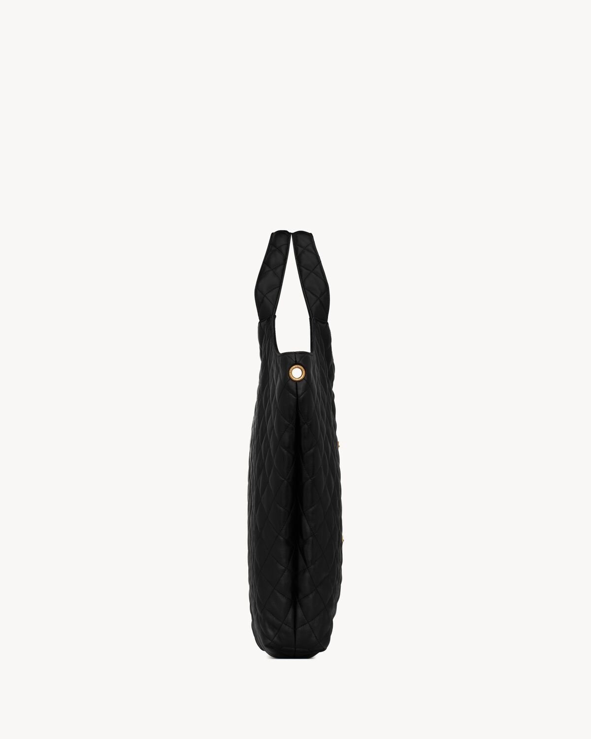 Maxi shopping bag with toggle closure, featuring a removable zipped pouch, decorated with carré-quilted overstitching and the new sculpted jewel CASSANDRE.