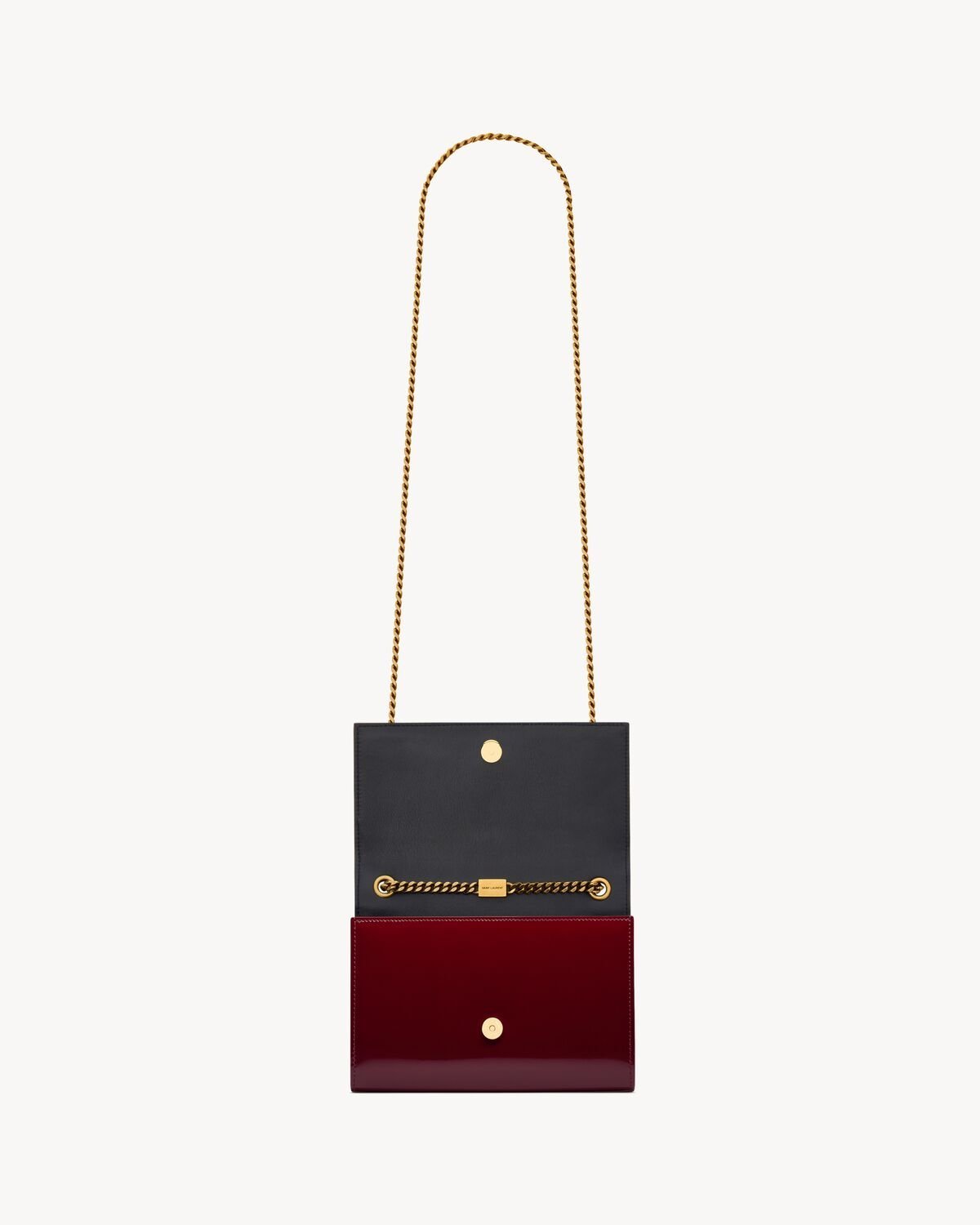 Shoulder bag adorned with a curb chain and metal cassandre.