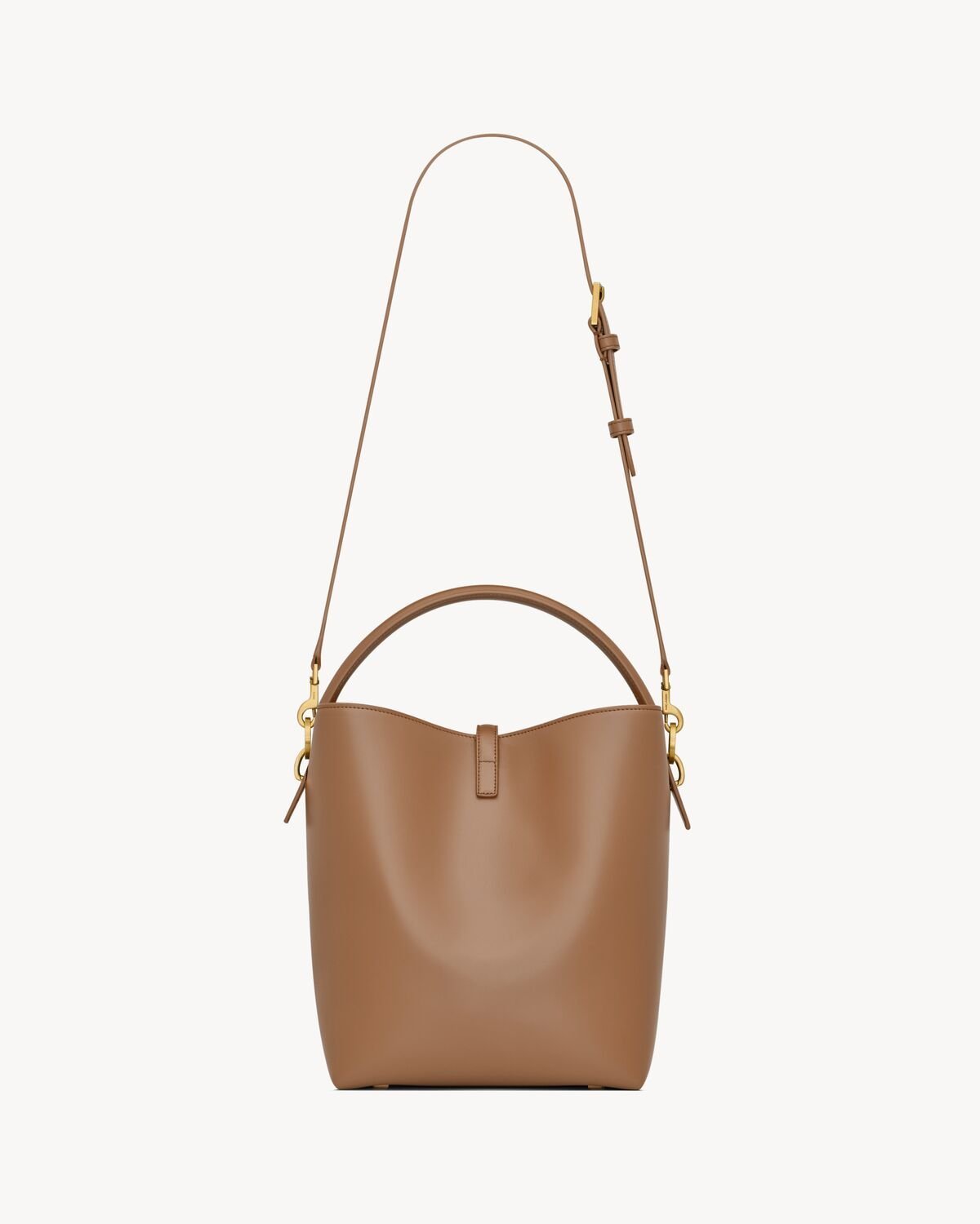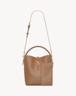 Bucket bag featuring the CASSANDRE hook closure, top handle and an adjustable and detachable shoulder strap.