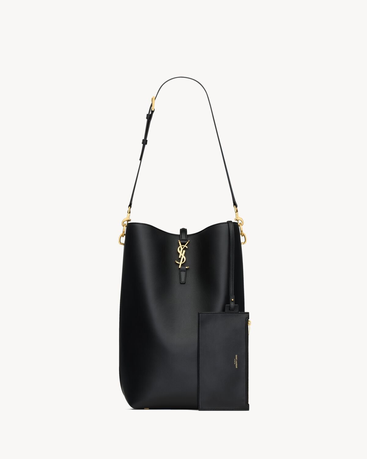 maxi version of the LE 37 bucket bag in finely grained leather, featuring a leather tab with CASSANDRE hook closure and tonal suede lining.