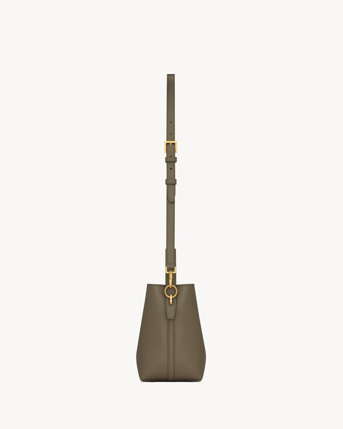 Bucket bag featuring the CASSANDRE hook closure, top handle and an adjustable and detachable shoulder strap.