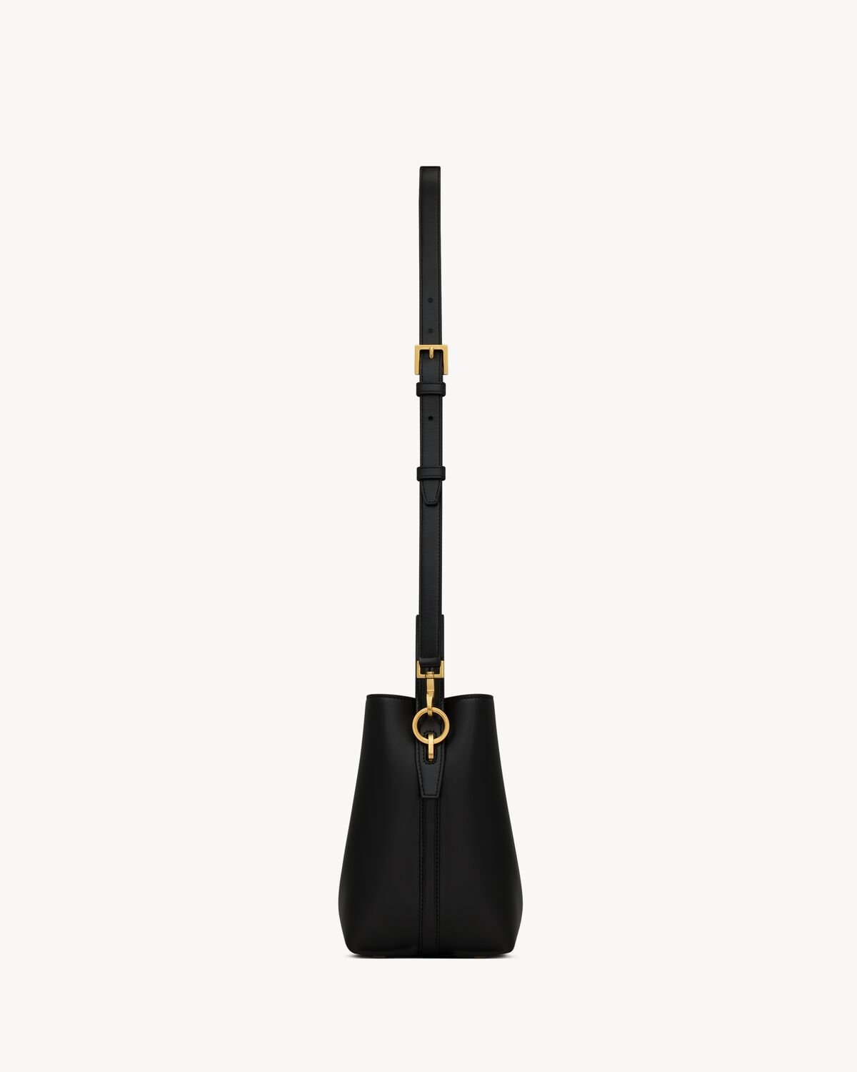 Bucket bag featuring the CASSANDRE hook closure, top handle and an adjustable and detachable shoulder strap.