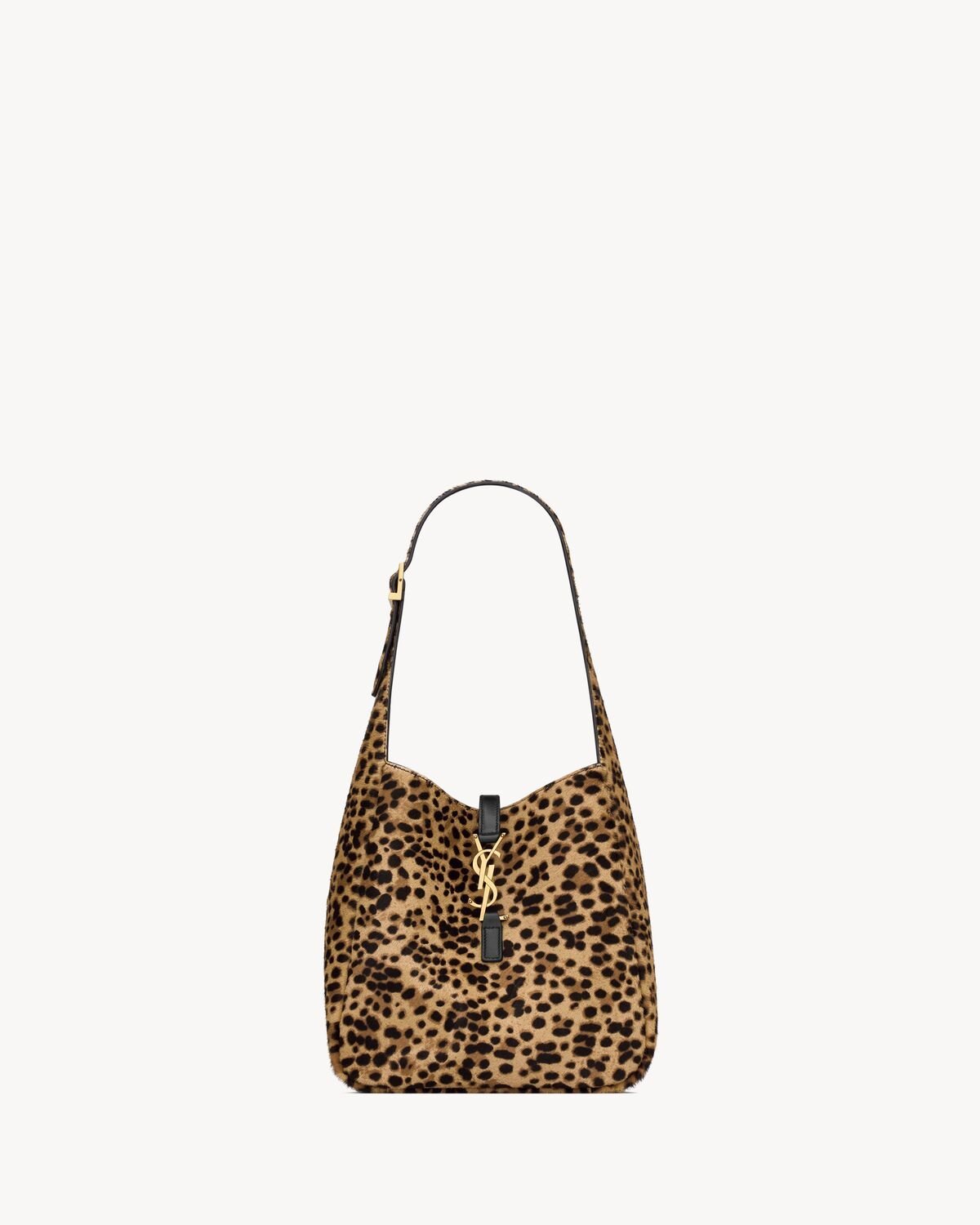 the small version of the iconic LE 5 à 7 in leopard-print pony hair and nappa leather, defined by its leather tab closure decorated with the CASSANDRE.