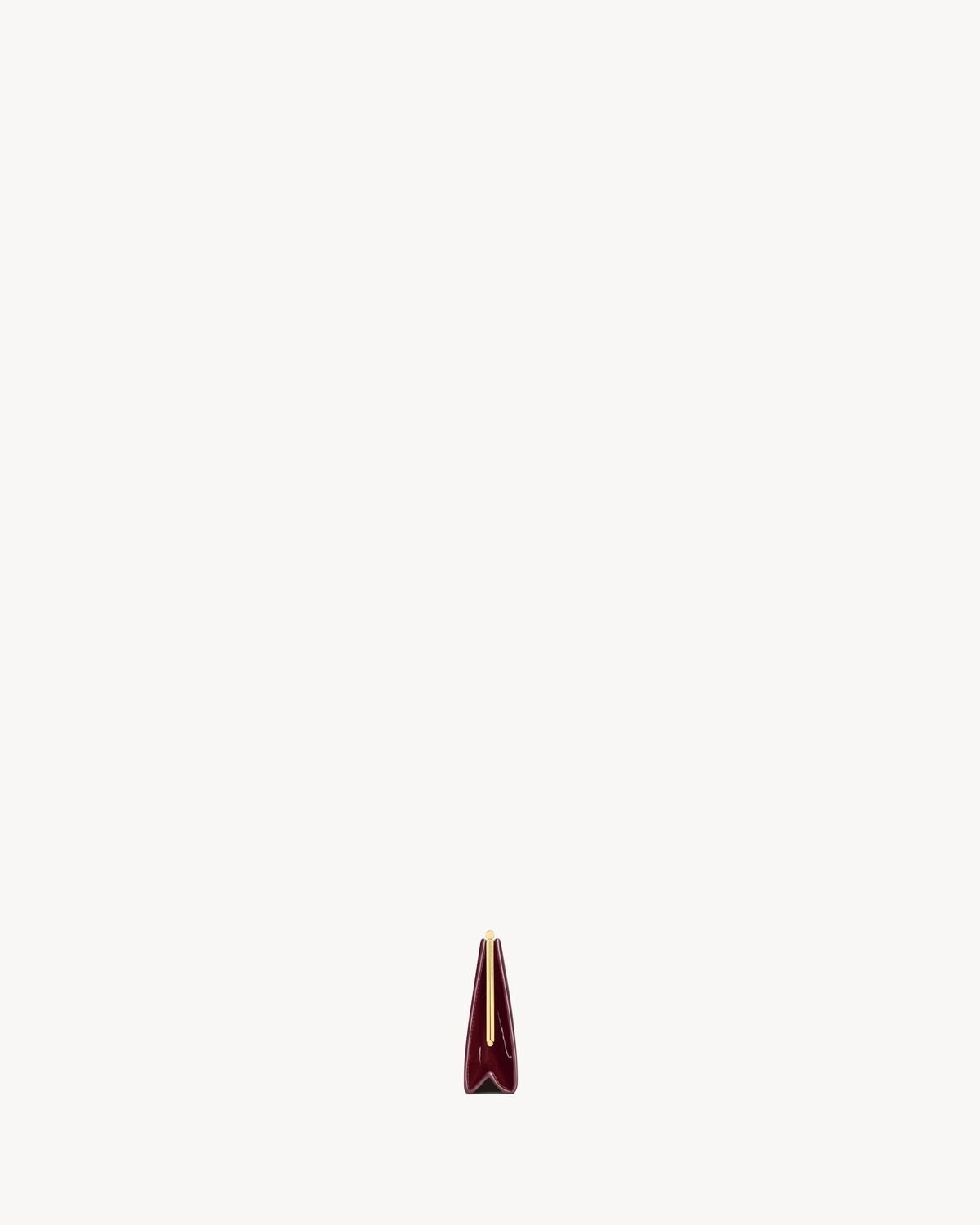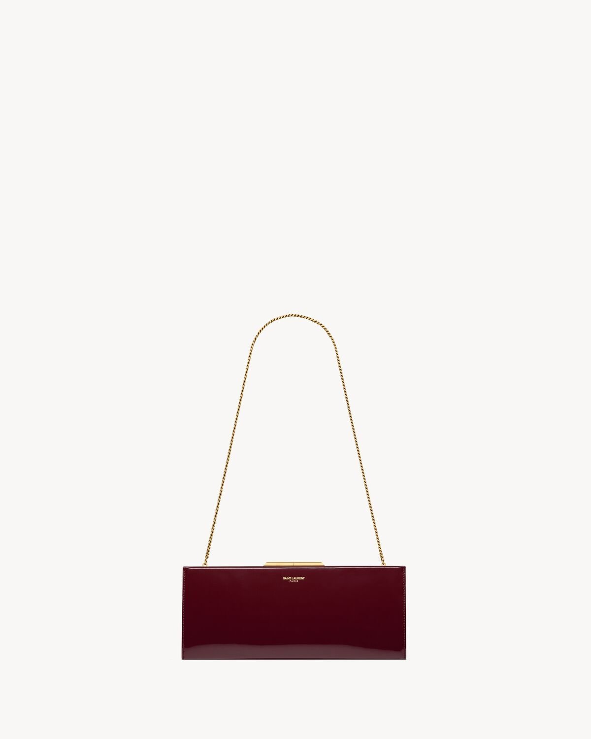 thin clutch case with a kiss-lock closure, embossed with the SAINT LAURENT PARIS signature.