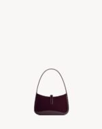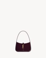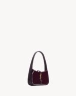LE 5 à 7 MINI WITH A LEATHER TAB FASTENING, CASSANDRE EMBELLISHMENT AND MATCHING SUEDE LINING.