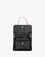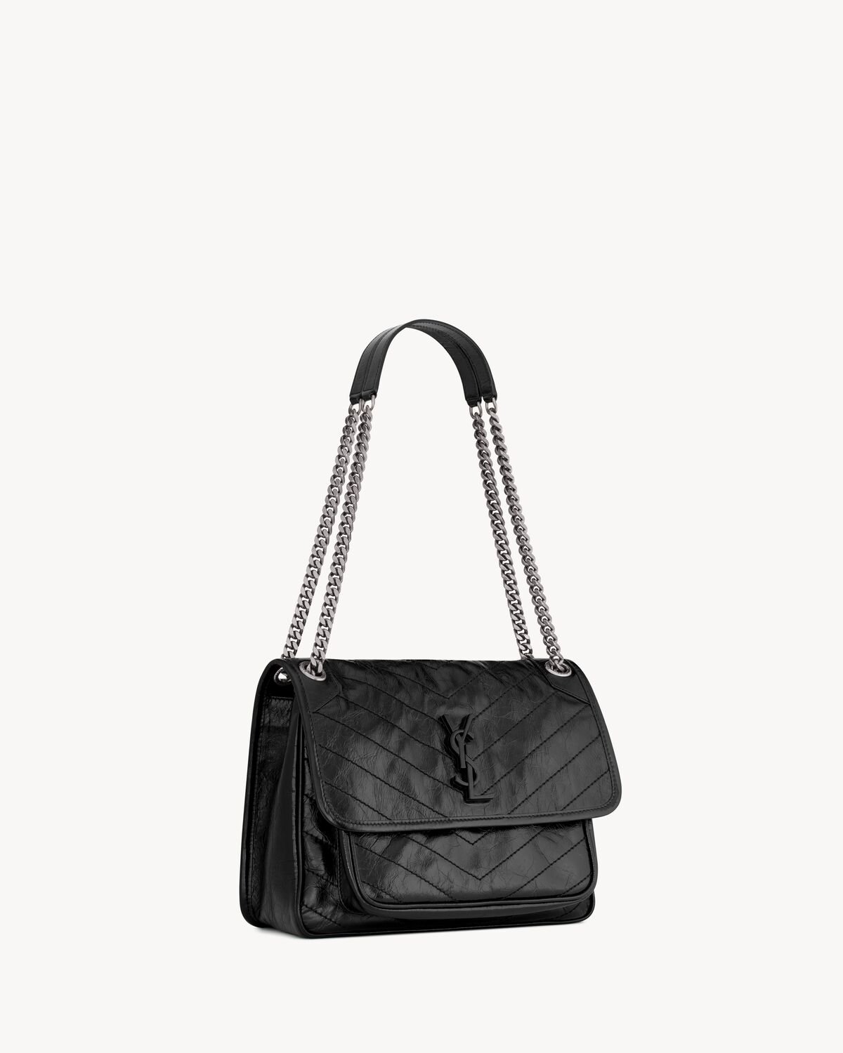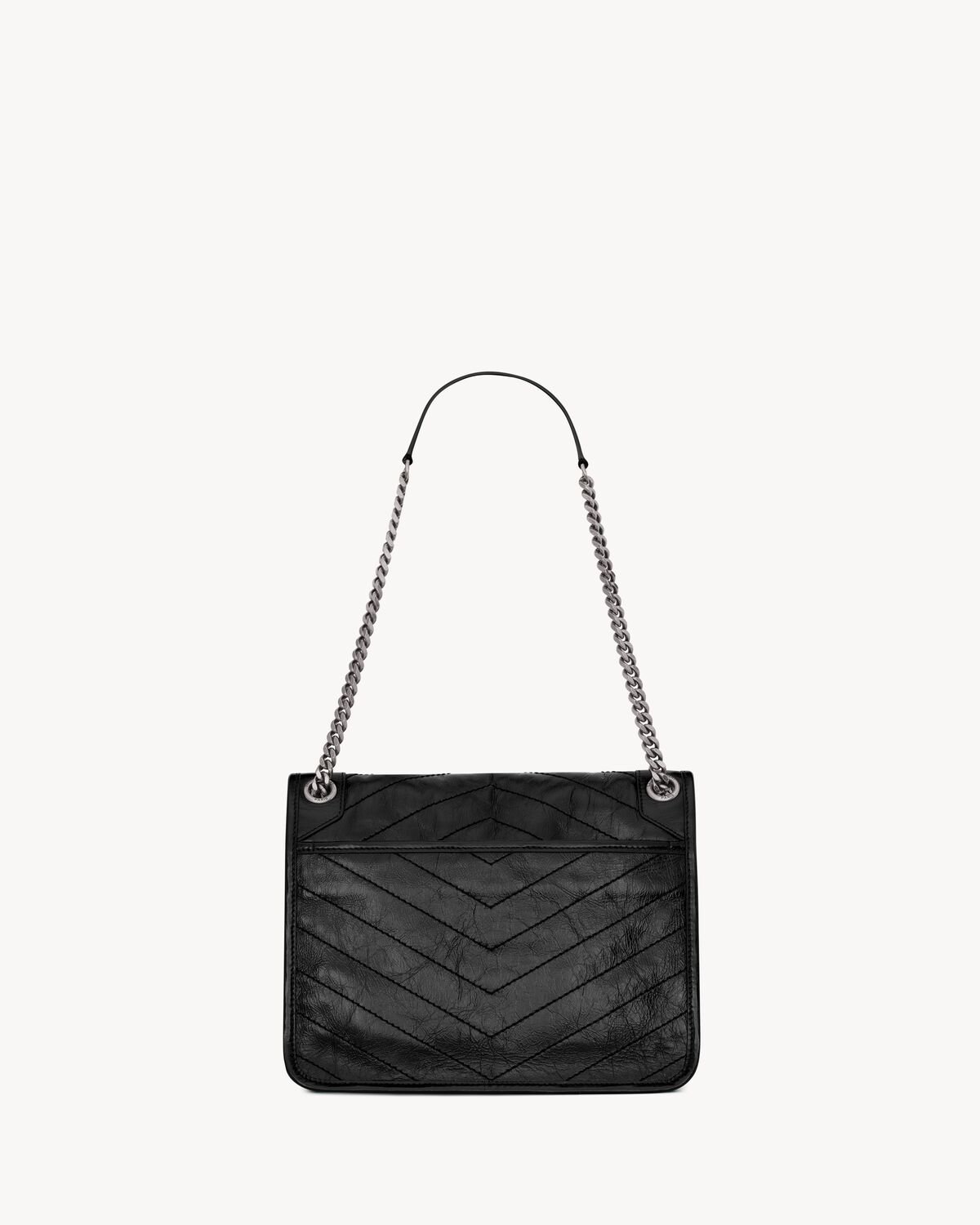 SOFT BAG IN VINTAGE CALF LEATHER, FEATURING CHEVRON QUILT OVERSTITCHING AND LEATHER-ENCASED CASSANDRE.