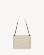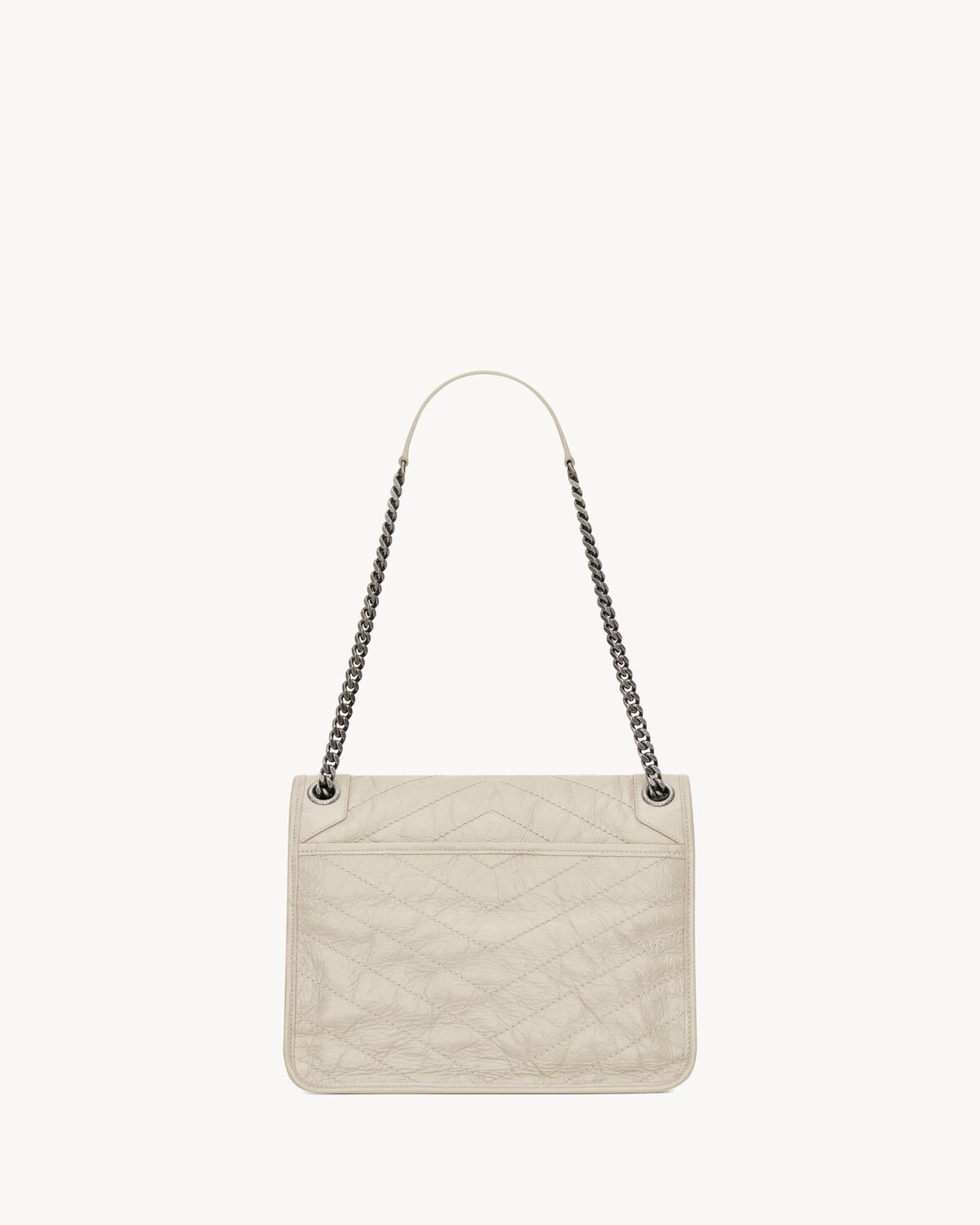 SOFT BAG IN VINTAGE CALF LEATHER, FEATURING CHEVRON QUILT OVERSTITCHING AND LEATHER-ENCASED CASSANDRE.
