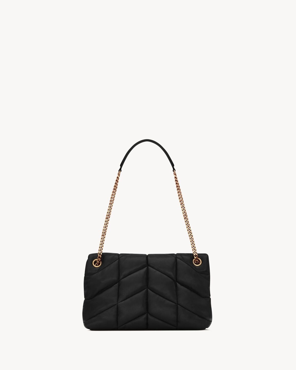 THE ICONIC LOULOU IN PUFFER VERSION, WITH CHEVRON QUILT OVERSTITCHING.